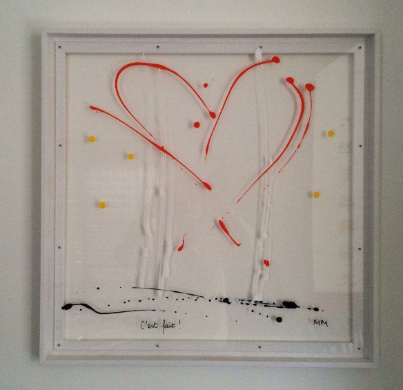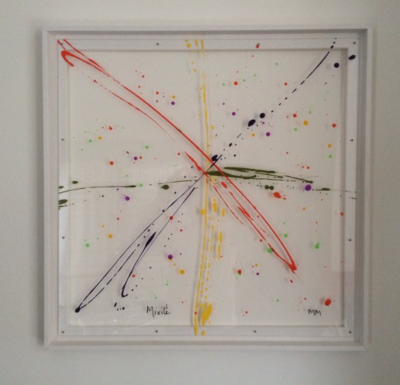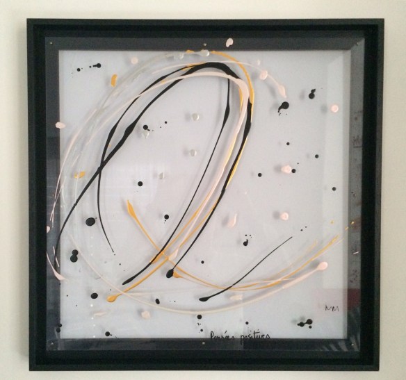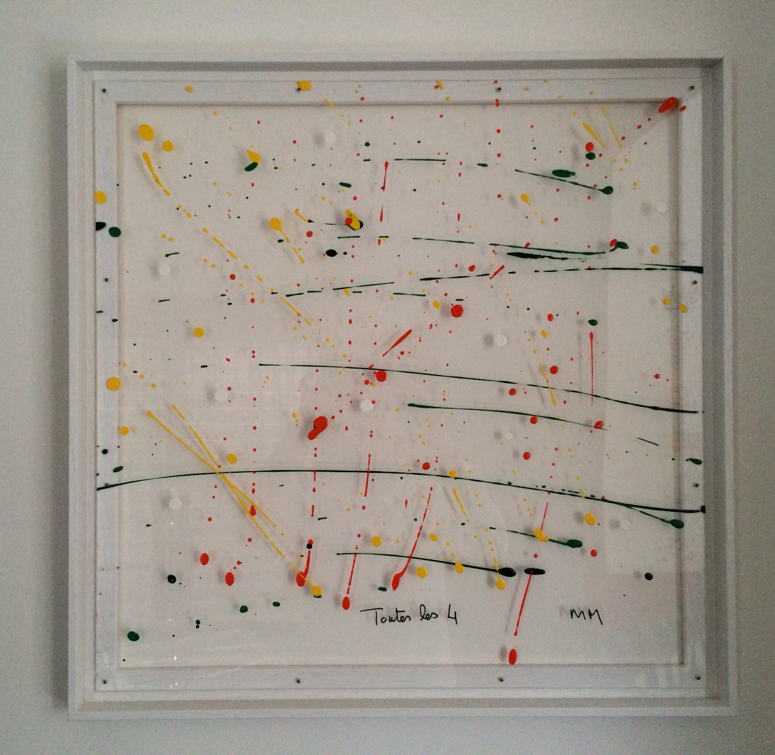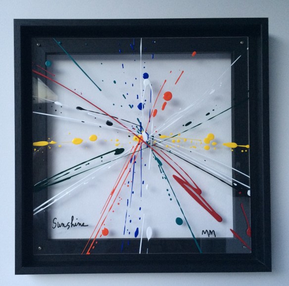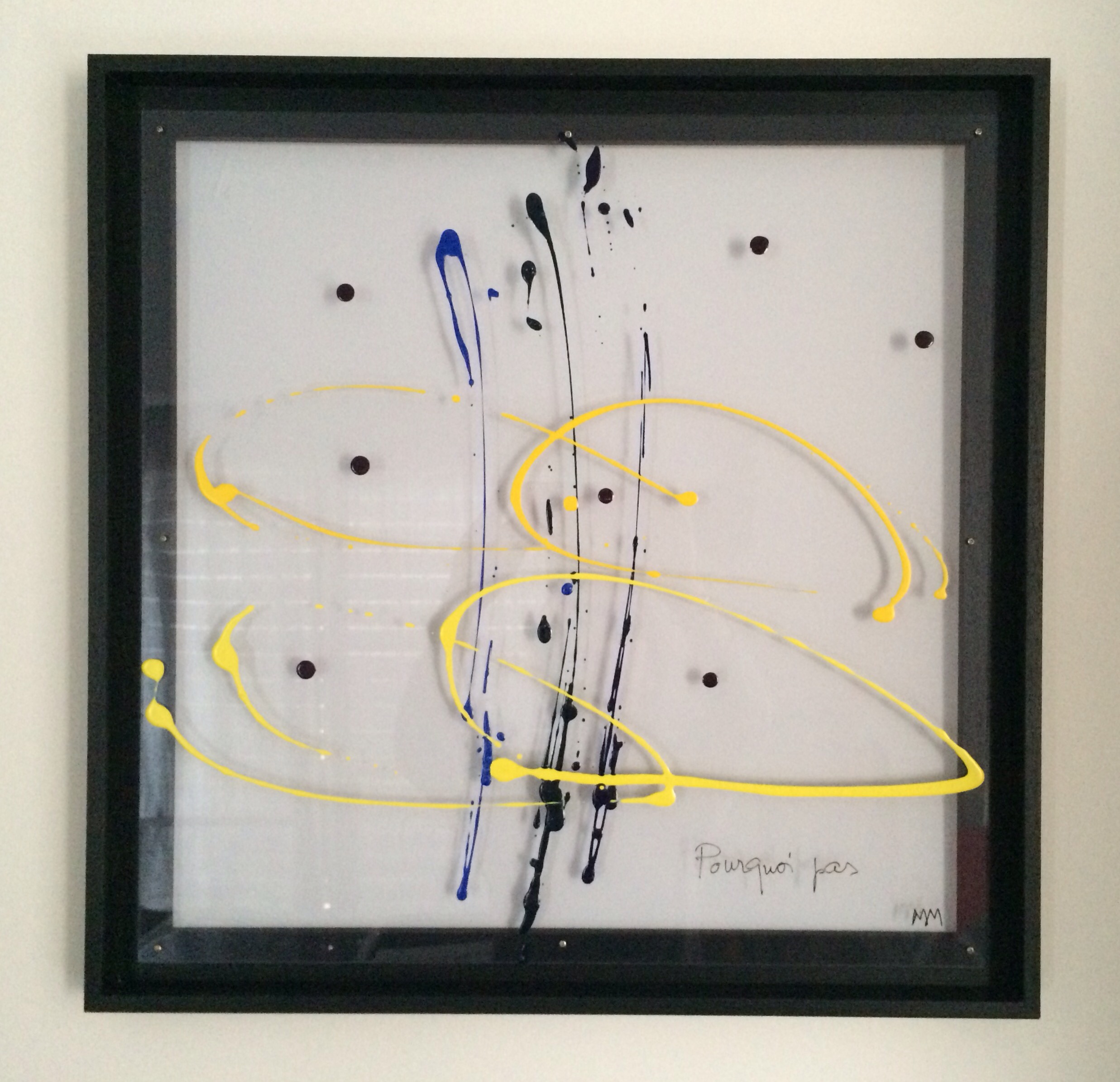 J’y présente une collection de 14 plexi. Il s’agit d’œuvres très contemporaines en peinture acrylique sur Plexiglas encadrées dans des caisses américaines noires ou blanches. Vous trouverez des œuvres en 50 cm sur 50 cm à 150€, 60 cm sur 60 cm à 200€ et une en 80 cm sur 80 cm à 300€.