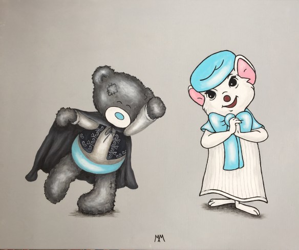 Coucou ça y est je suis de retour de vacances ! Voilà ma dernière réalisation pour le moins originale !! Un couple de futurs mariés m’a commandé cette toile pour leur mariage : leurs 2 « Madeleines de Proust » réunies sur la même toile pour l’occasion ! Ce fut un exercice inhabituel et très amusant.