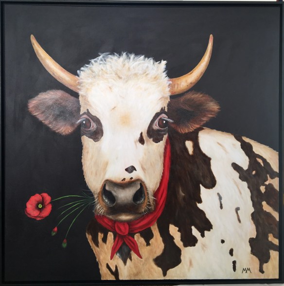 La vache m’a beaucoup inspirée, en particulier ses yeux et son « nez ». L’encadrement apporte vraiment un plus et finit le tout.