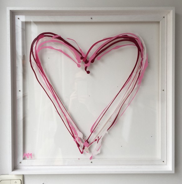Cadeau pour La Maison Rose! Un entrelacs de cœurs roses 💕 tout doux sur plexi encadré d’une caisse américaine 💕💕