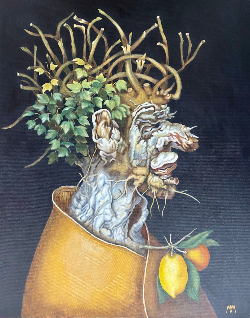 Chaque année mon fils me commande pour son anniversaire une œuvre qui me fasse sortir de ma zone de confort ! Cette année : l’Hiver d’Arcimboldo peintre italien du 16ieme siècle ! Un travail énorme mais très intéressant !! J’ai adoré !!