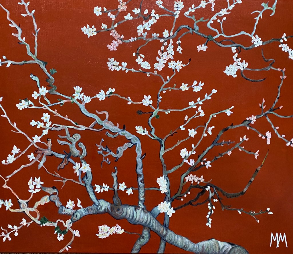 Adaptation de la branche d’amandier de Van Gogh sur fond ocre rouge