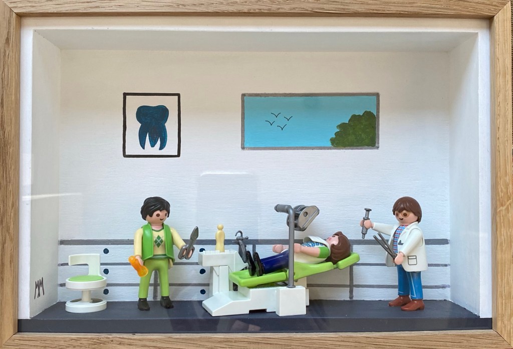 Commande pour un cadeau très personnalisé !! Une vitrine différente pour des éléments plus imposants… le siège de dentiste 🦷🦷🦷🦷