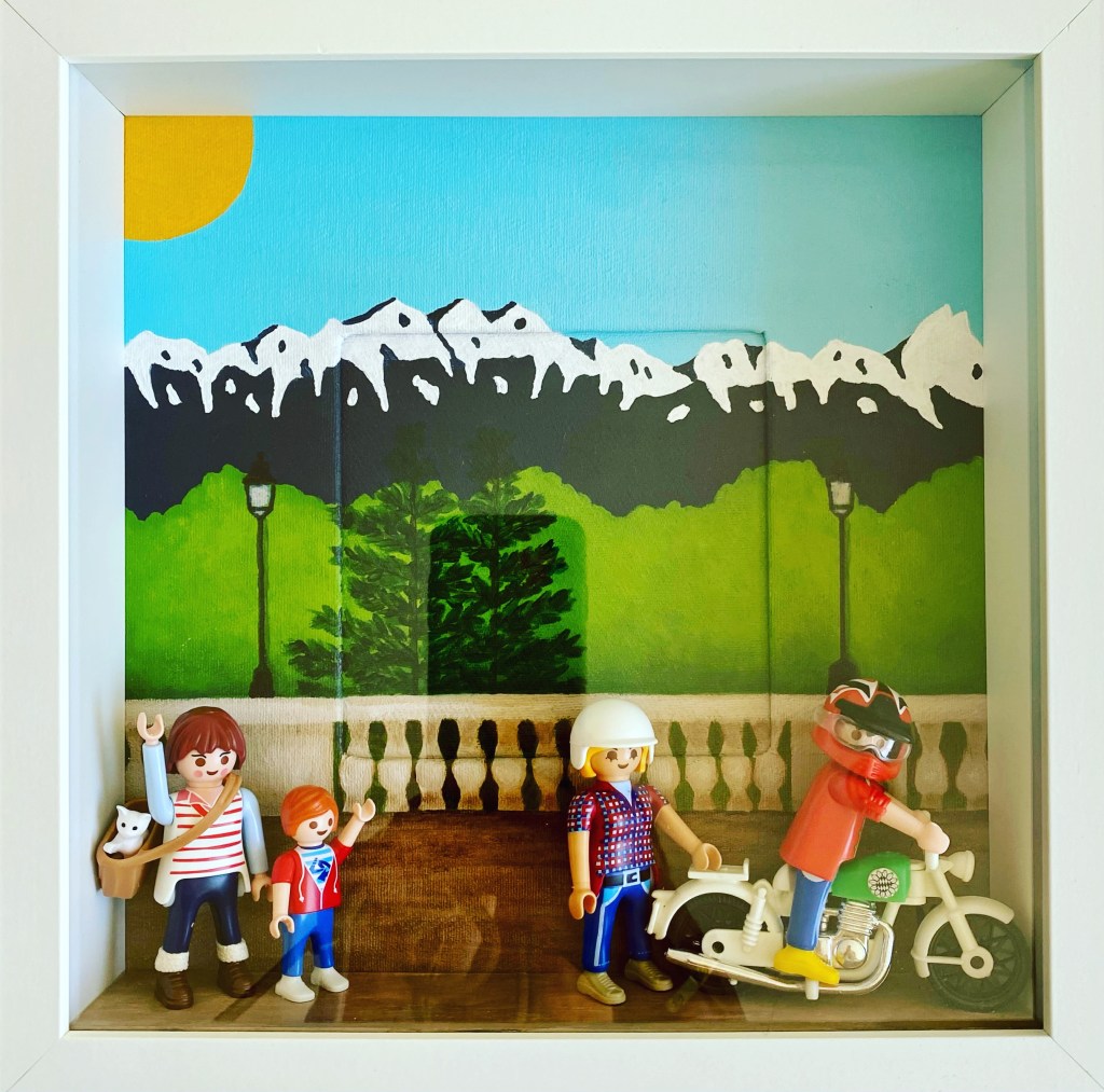 La famille L.. sur le boulevard des Pyrénées à Pau 🏔! Encore beaucoup de personnalisation pour ce cadeau 🎁 !! #vitrinepersonnalisee #cadeaupersonnalisé #vitrineplaymobil #playmobil #boulevarddespyrenees #villedepau #peinturetplaymobil #acrylicpainting