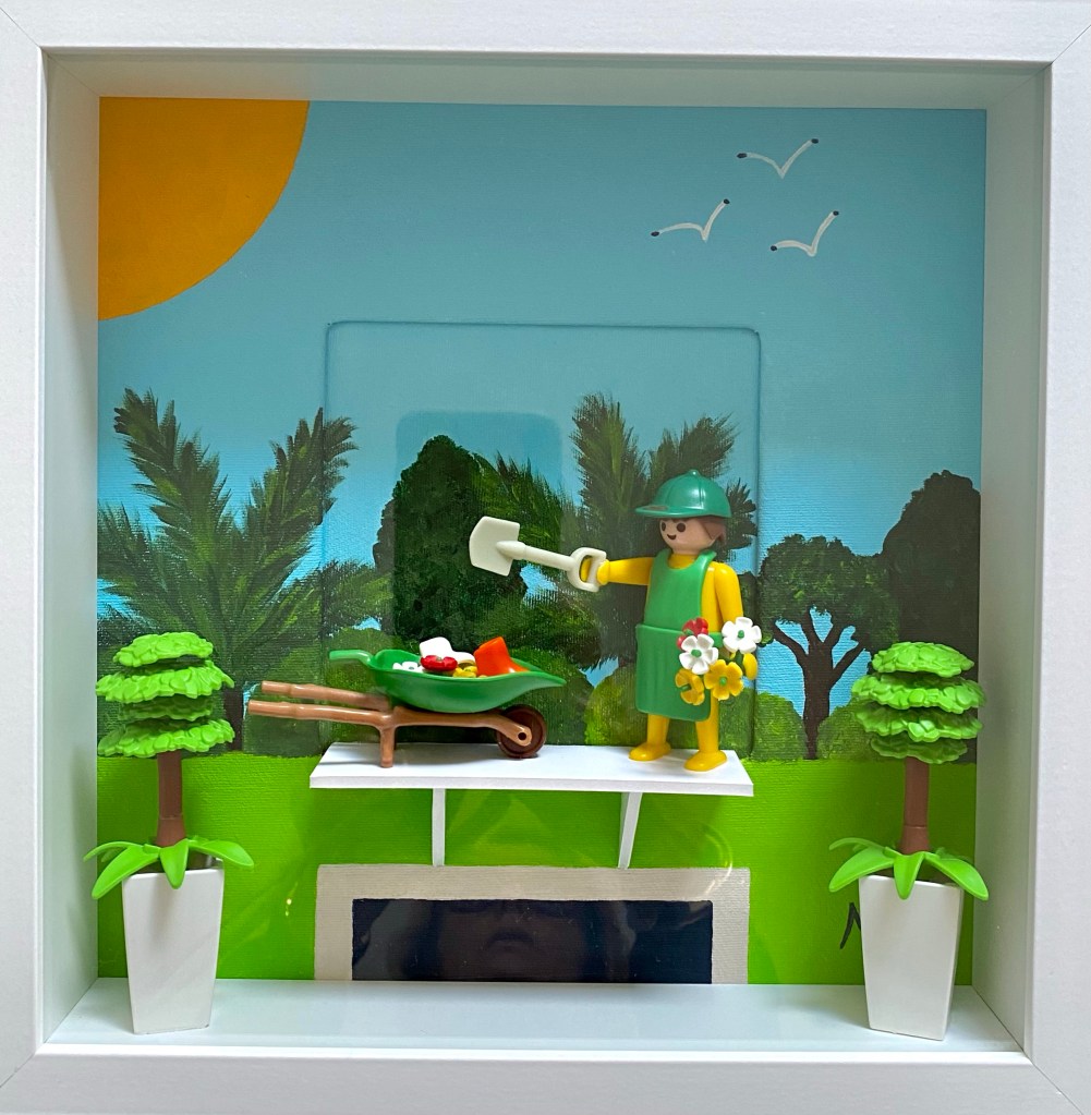 Mon petit jardinier préféré !!! Avec un Playmobil vintage qui m’appartenait !! #vitrinepersonnalisee #vitrineplaymo #playmovintage #cadeaupersonnalisé #personnalisation #playmobiladdict #peinturetplaymobil