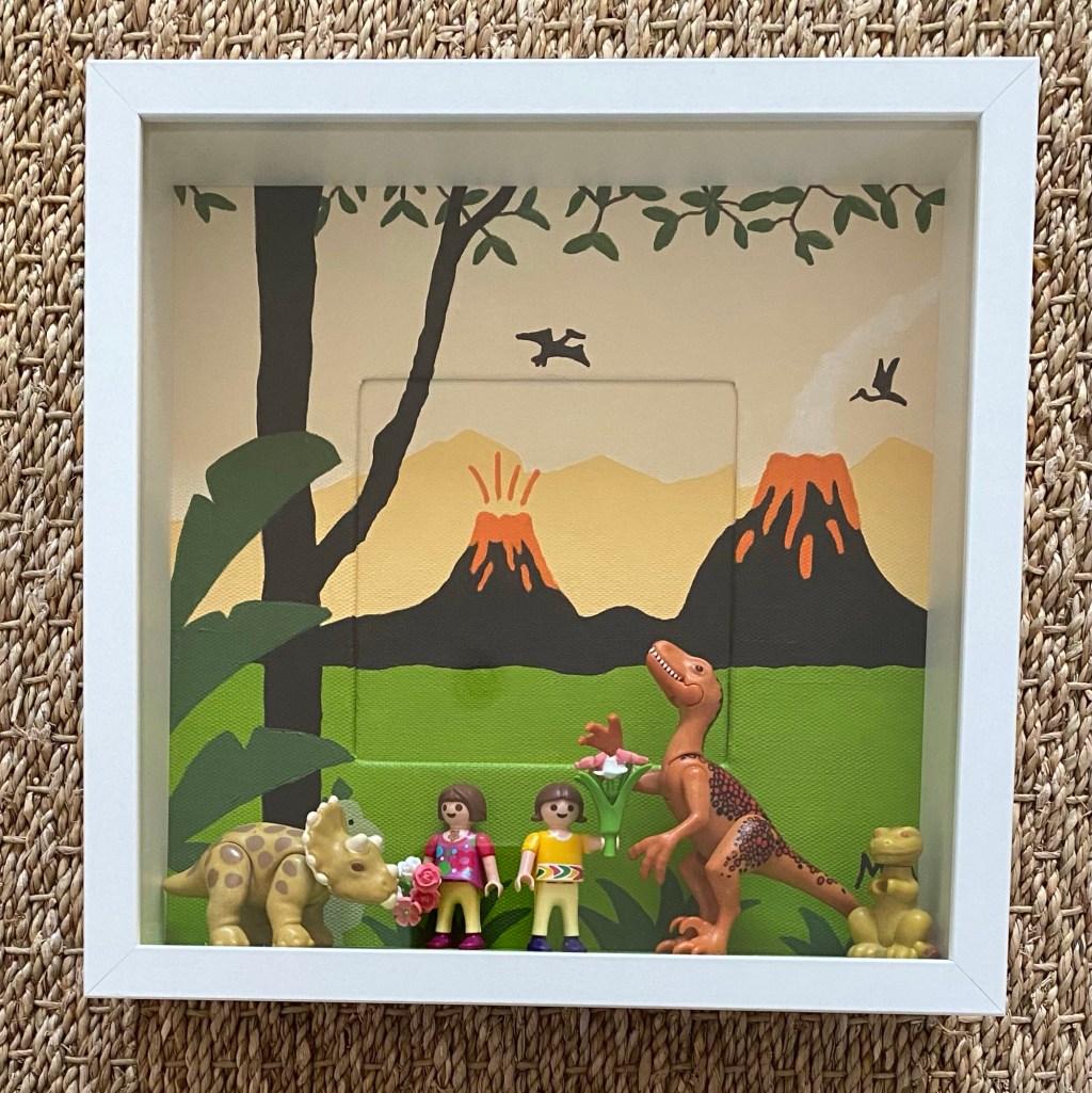 Dino time !!🦖🦕❤️❤️#dino #dinosaures #dinosaurs #cadeaupersonnalise #cadeauanniversaire #vitrineplaymobil #fandeplaymobil #playmoaddict #playmostory #peinturetplaymobil #acrylicpainting #acrylic