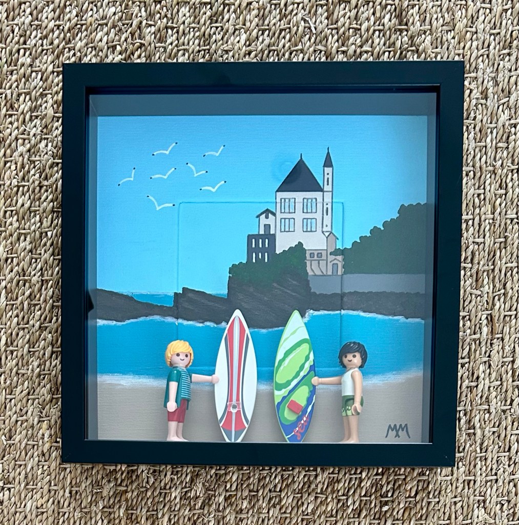 Les petits surfeurs 🏄🏻♂️ devant la Villa Bella ! Idée de cadeau 🎁 souvenir de vacances 😍 ##surf#cotedesbasques #villabelza #biarritz #playmobil #vitrineplaymobil #cadeaupersonnalisé #fandeplaymobil #peintureacrylique🎨 #acrylicpainting