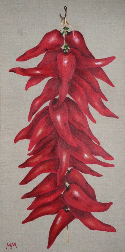 2 toiles sur le thème du Pays Basque : du linge basque et une tresse de piment